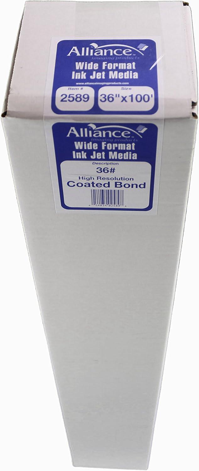 Alliance Wide Format Paper 24" x 150' High Resolution Ink Jet Media Coated Bond Rolls 96 Bright with 2" core For Aqueous and Latex Printers. 1 Roll per Carton 24 LB(36 LB)