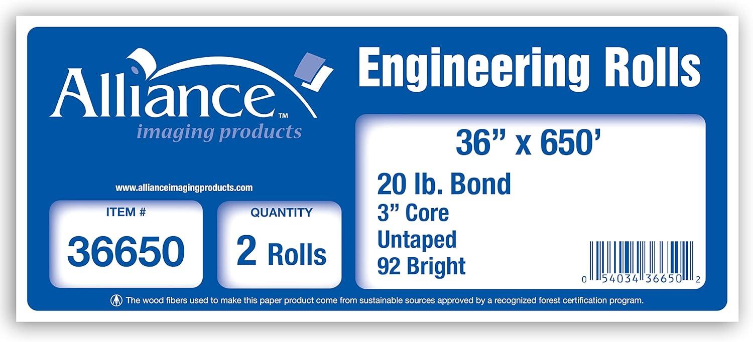 Alliance Wide Format Paper Bond Engineering Rolls (2 Rolls, 36 In x 500 Ft)(2 Rolls)
