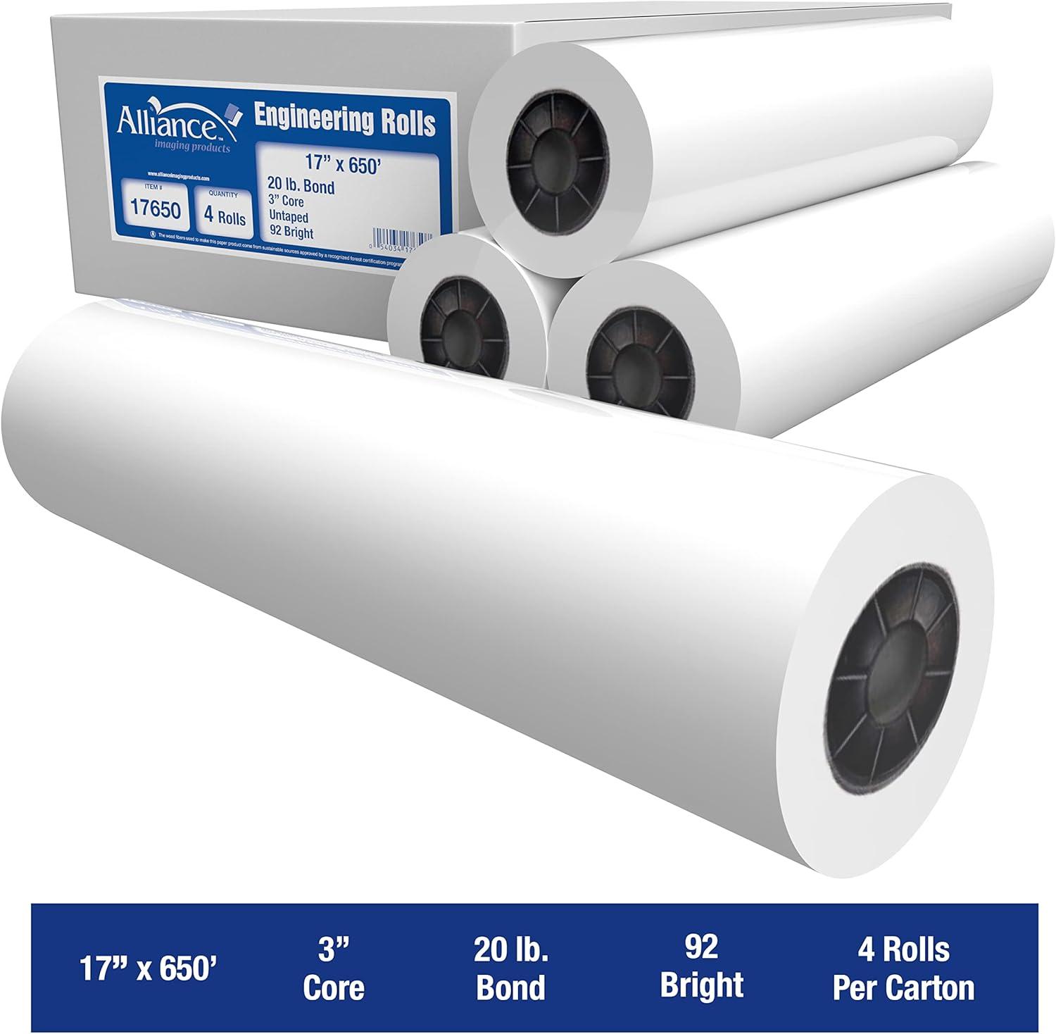 Alliance Wide Format Paper Rolls, 20lb with 3″ Core (18 In x 500 Ft | 3″ Core, 20lb | 4 Rolls)(17 In x 650 FT | 3″ Core)