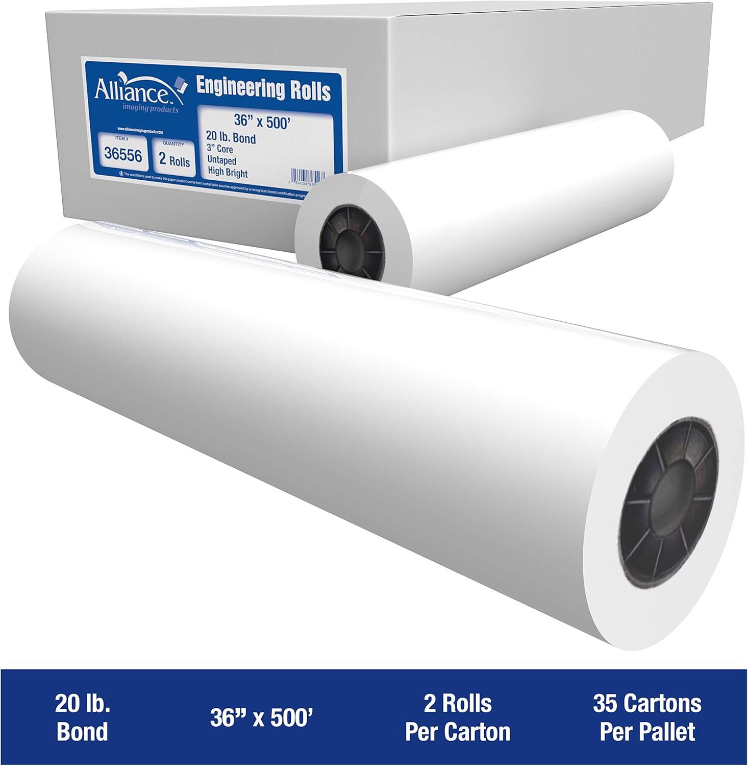 Alliance Wide Format Paper36” x 500’ Rolls Bond Engineering with 3″ Core 96 Bright, 20lb – 2 Rolls per Carton