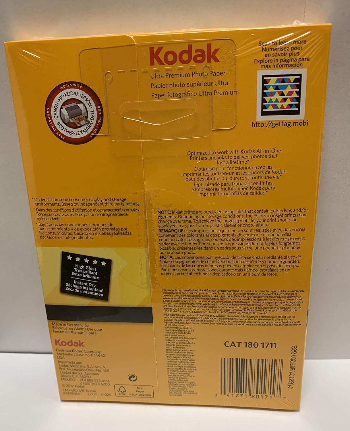 Kodak photo Paper 5 x 7 glossy, 20 count 74 lb – 280 g/m (41156-1801711)(8.5 x 11 | 25 Sheets)