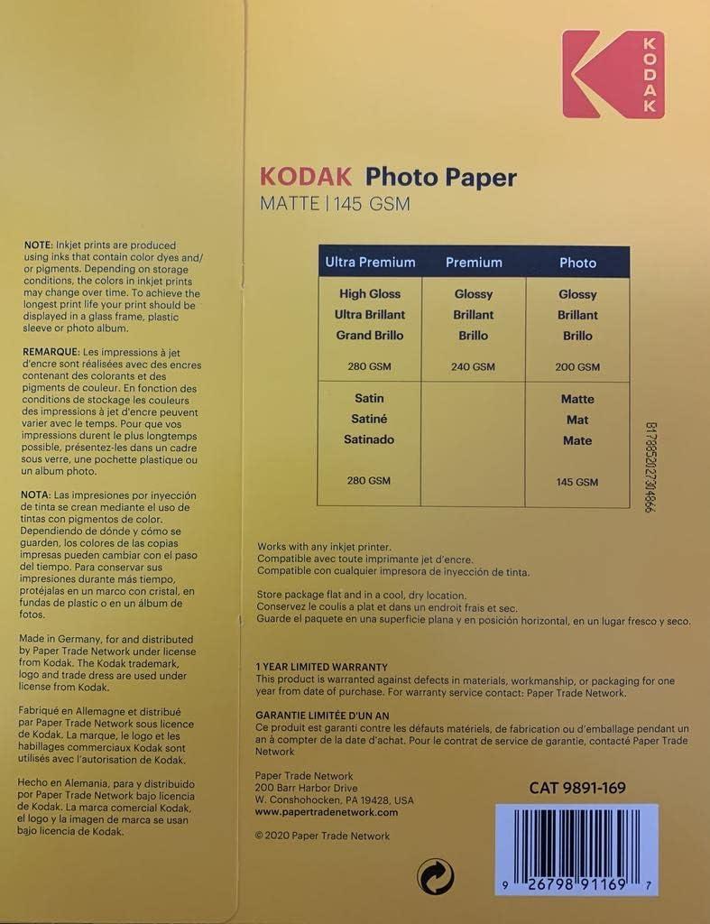 Kodak photo Paper 5 x 7 glossy, 20 count 74 lb – 280 g/m (41156-1801711)(8.5 x 11 | 50 Sheets)