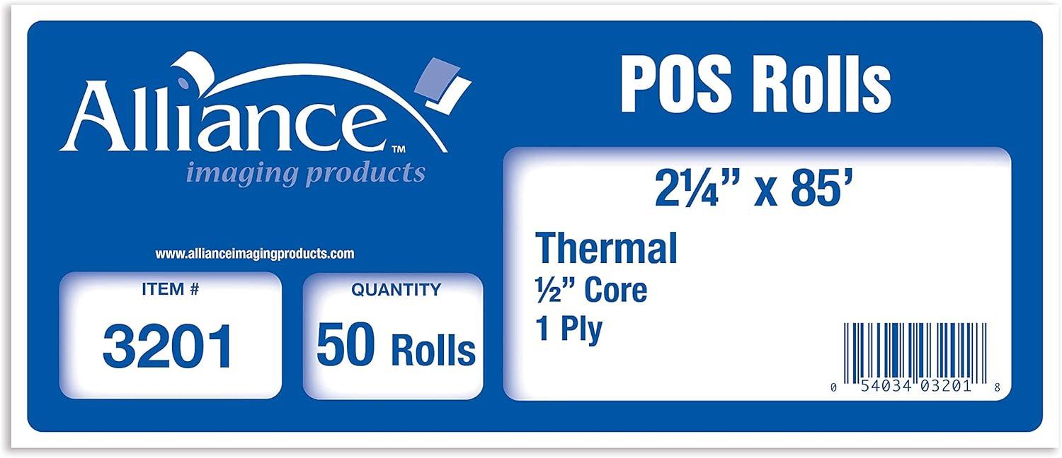 Thermal Paper Receipt Rolls, 2-1/4″ x 50′, 48 Gram Weight, BPA Free, Grade A, Pure 85 White Paper, Unique Thermal Coating(2-1/4″ x 85′ – 50 rolls)